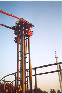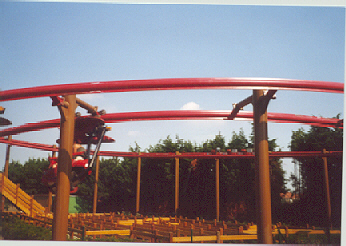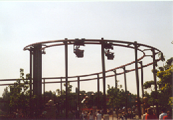 | Un descente folle suspendue à des rails au dessus du parc et de ses allées. Vous embarquez à bord d'engins mi vaisseau, mi moto. Vous prenez l'ascenseur pour monter et voila votre folle descente qui commence. L'arrivée se fait en douceur. | |