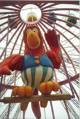 | Magnifique grande roue. Franchissez la cage du perroquet pour vous même ensuite vous retrouver en cage à bord de cette grande roue. Les visiteurs on l'impression d'être des oiseaux que l'on promène au dessus du parc. L'altitude n'est pas trop haute, ce qui est fait pour rassurer les plus jeunes. Nous attribuons une mention spéciale pour cette attraction | |