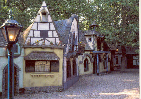 Il était possible à l'origine, et aussi dans les années 1980 de pénétrer dans le palais d'ali baba pour y voir des scenettes, on pouvait également voir un géant qui se promenait. Un jardinier plantait des fleurs qui chantaient. Mais ces détails ont disparu avec le temps... Souvenez vous, on entrait dans le bois des contes de fées sous ces arches, on appuyait sur un bouton et les trompettistes du haut de leur tour, annonçaient notre venue. On pouvait également se promener dans le village, en appuyant ou tirant sur des leviers, les personnages se mettaient à bouger, parler, la sorcière survolait le parc. Ceux qui ont une bonne mémoire se souviendront de la maison hantée au sol pentu, dans cette pièce sombre, il y avait une chaise...