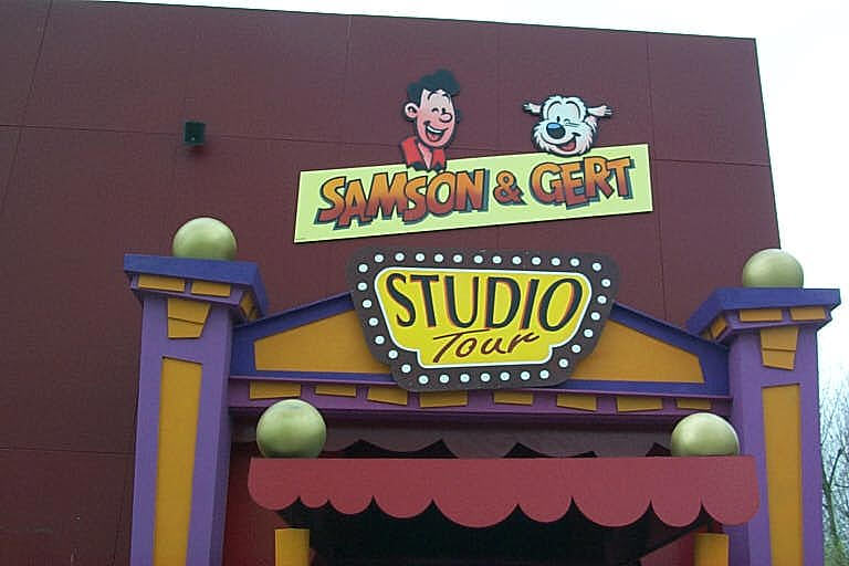 Nouveauté 2001 ! Découvrez ici les décors originaux qui ont servis à tourner la série Samson & Gert. Un écran de télévision présente des scènes qui ont été tournées dans les décors.